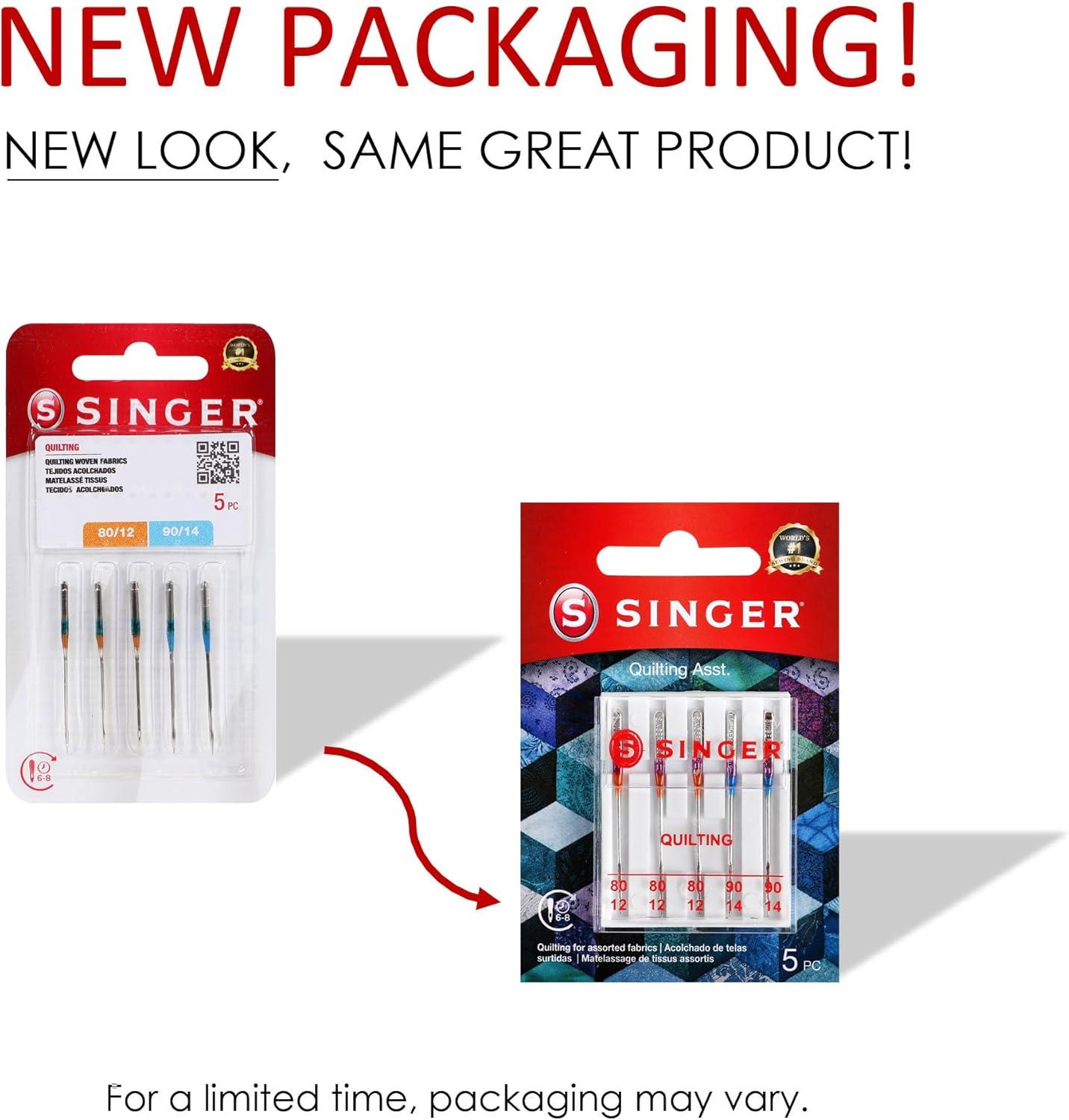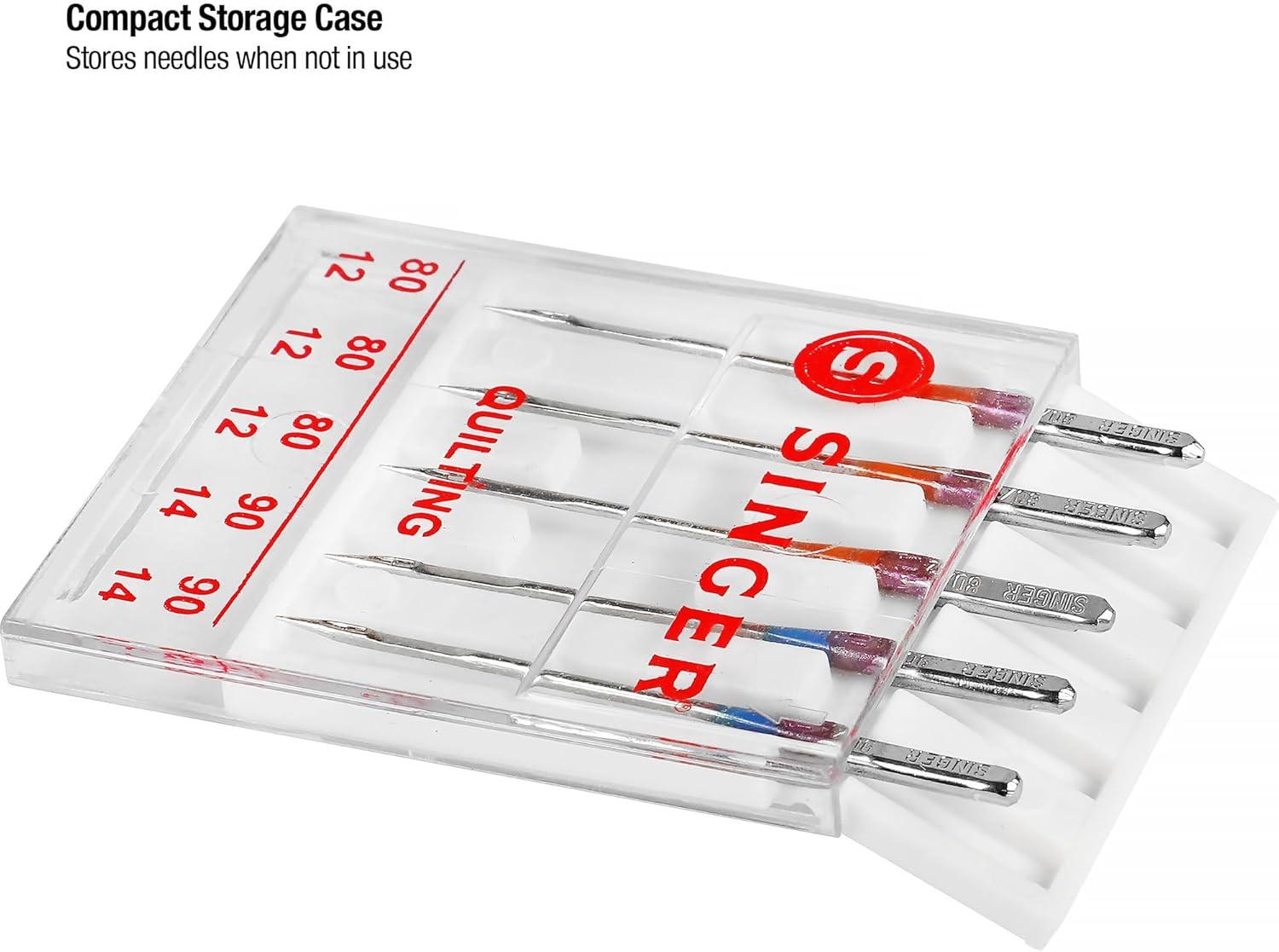 This set of 5 machine quilting needles are designed to stitch through multiple layers of fabric, great for quilting, Blanket and patchwork. Needles are size 80/11, best for lightweight woven fabrics. Needles are size 90/14, best for lightweight woven fabrics, and have special tapered point that penetrates multiple layers and prevents Damage to the fabrics. Needles can be used by SINGER, brother, Kenmore and other quality sewing machines. The 5 machine needles come in a thin, durable case with a clear cover.