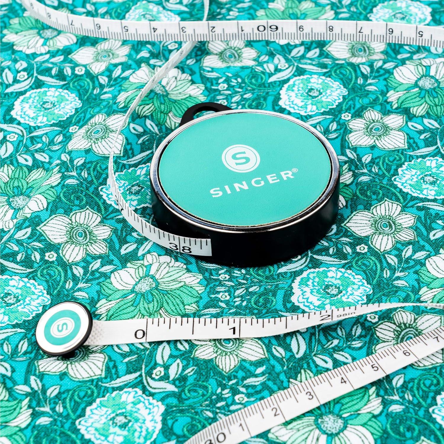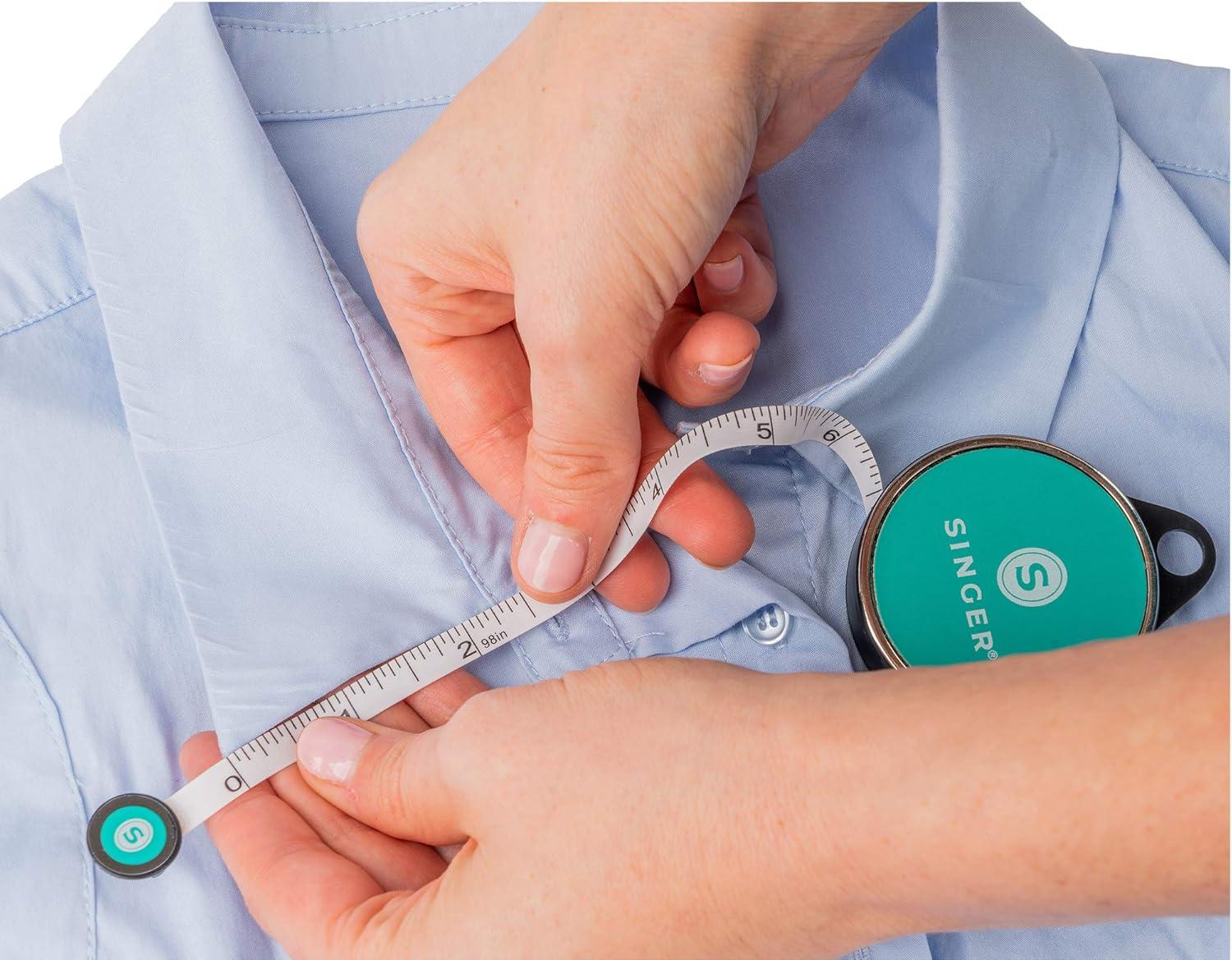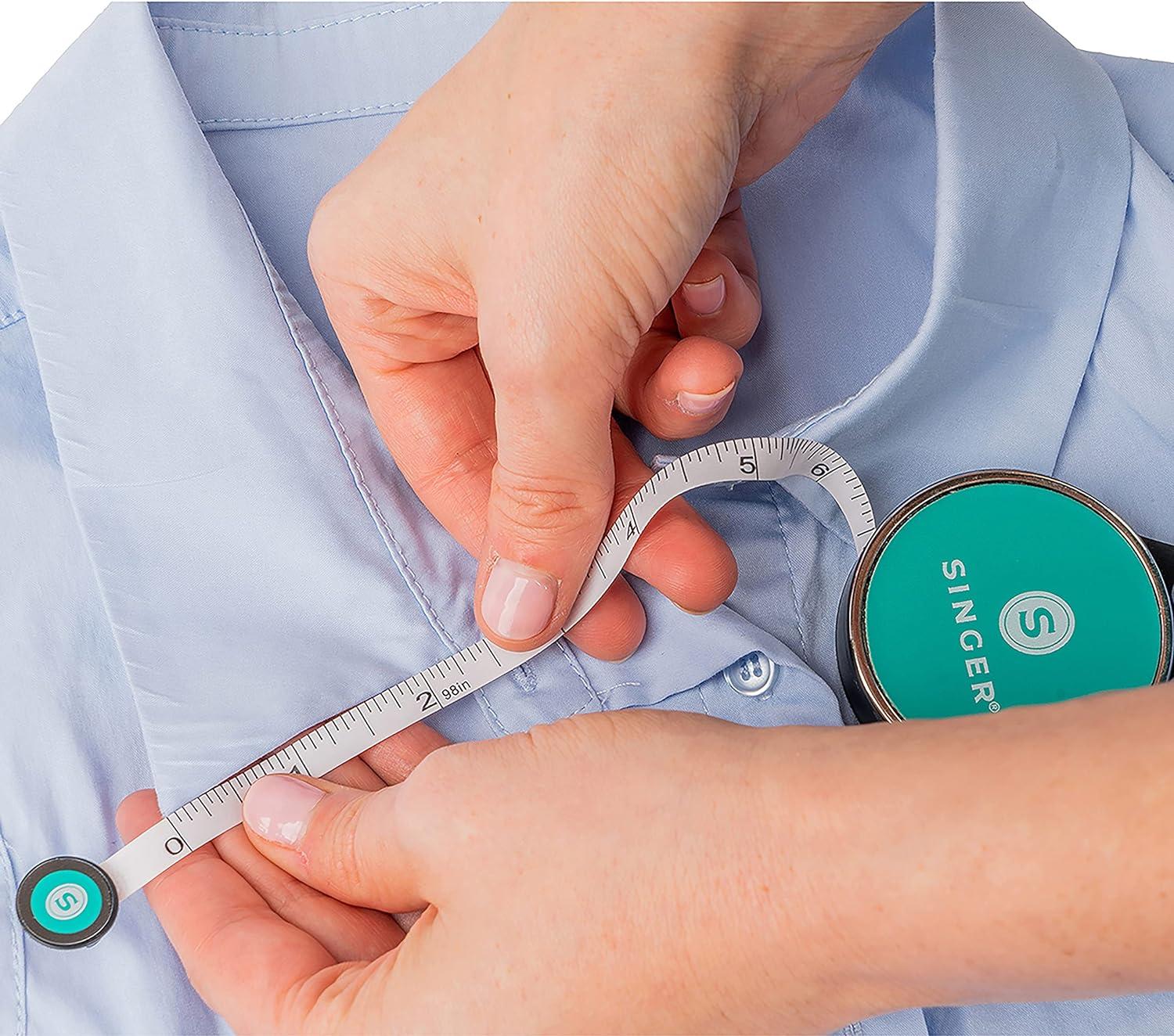 A great addition to a seamstress or tailor’s toolkit, this retractable tape measure comes in a pink compact with a built-in ring for easy lanyard or peg attachment. Compact and easily transported, the retractable tape measure is 96 inches, or 8 feet, long. Made of vinyl, it is both flexible and durable. The measuring tape shows both inches and centimeters for easy measuring and converting. Its bright exterior makes it easy to pick out among other tools in a sewer’s basic notions kit.